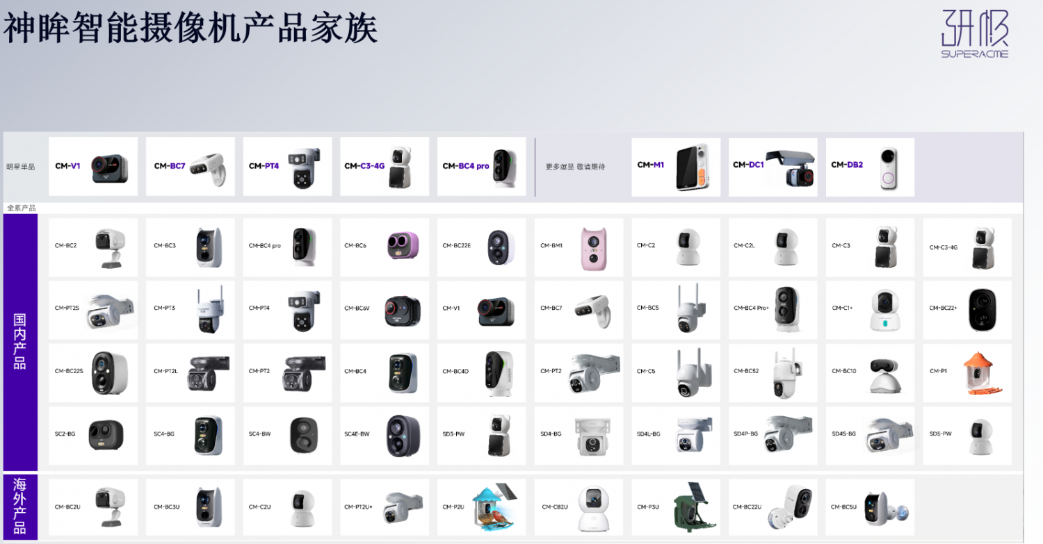 神眸 CINMOORE 以自研低功耗芯片 “研极芯” 为核心技术壁垒,通过全定制设计方法学、非 DDR 低功耗架构和全自研 IP,实现了极致能效比,并构建了集成 4TOPS 端侧 NPU 的全栈 AI 视觉体系,从而打造出 “长续航、强智能、高性价比” 的产品优势;其全系 AI 智能摄像机覆盖家庭安防、户外监控等全场景应用,并通过京东、天猫、抖音等线上平台及天猫优品、京东之家等线下门店实现全渠道销售,依托杭州总部及全国 10 大研发中心的全球化布局,持续驱动技术创新与产品迭代。