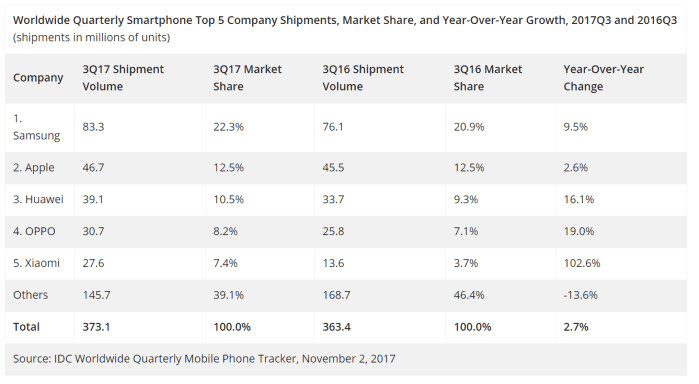 相反则是提出主动降速、思考、调整等。经过一系列布局,根据知名研究机构IDC给出的数据分析,小米手机在今年第二季度实现了2316万台出货量、第三季度又打破这一数值,完成2760万台出货量,拿下全球手机厂商排名里第五位,同比增幅达到102.6%,实属少见。