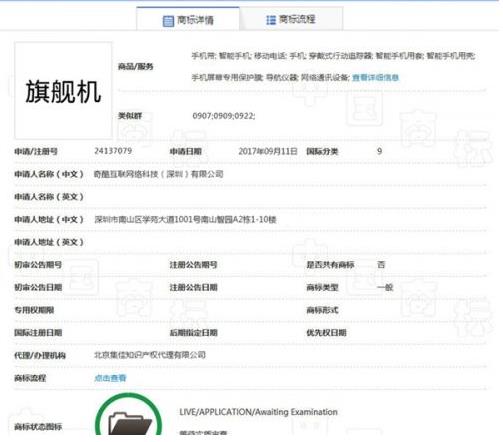 据国家商标公开查询资料显示,360旗下手机业务奇酷互连已经抢先申请注册“旗舰机”的商标,类别涵盖智能手机、手机壳/套、保护膜、导航仪等等。