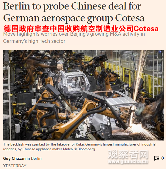 德国为什么突然对这家小公司如此“上心”,连金融时报都表示,德国的目标之一就是阻止中国人在高科技制造业方向上的收购。