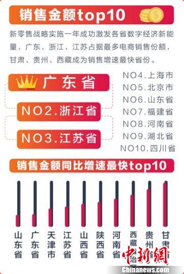 图为阿里巴巴2017年全国数字经济发展报告销售金额top10省份。供图