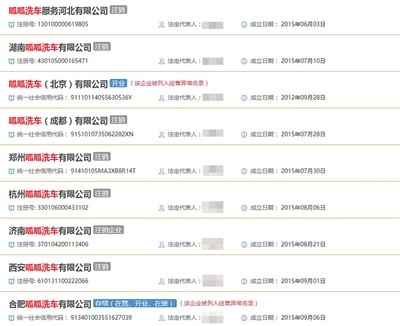 记者昨天查询国家企业信用信息公示系统,发现上述提及的各地分公司已大多数被注销,没有显示注销的,也已被列入经营异常名录。