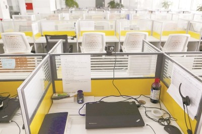 少数员工正在前台办理退工手续 本版图片/晨报记者 张佳琪