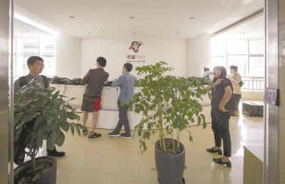 昨天下午,记者在位于江场三路288号“学霸1对1”公司采访时看到,公司里所有的电脑都搬到了前台,前来讨要学费的家长在那里进进出出,而该公司382名员工基本上也都被欠薪两个月。