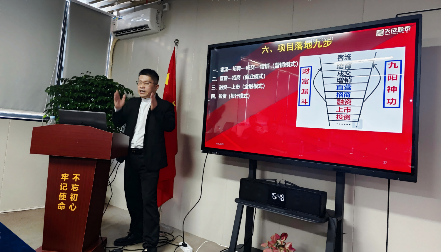 天成盈泰联合发起人、流量变现专家闫家和先生带来了《招商融资破局》的主题分享。闫家和先生拥有丰富的行业经验和成功的实战案例,在招商融资、流量变现等领域具有深厚的造诣。
