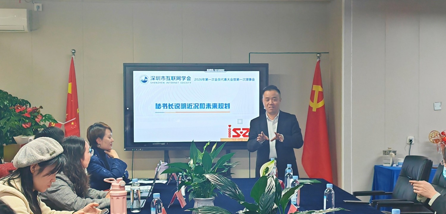 “解锁万物互联密码 开启 AI 智能新篇章”。1 月 10 日下午,深圳市互联网学会 2025年会员代表大会暨2026年第一次理事会在臻湾汇人工智能产业园隆重举行。来自粤港澳大湾区的精尖互联网高科技人才和学会会员代表齐聚一堂 ,共话互联网创新发展、AI 智能新篇章。