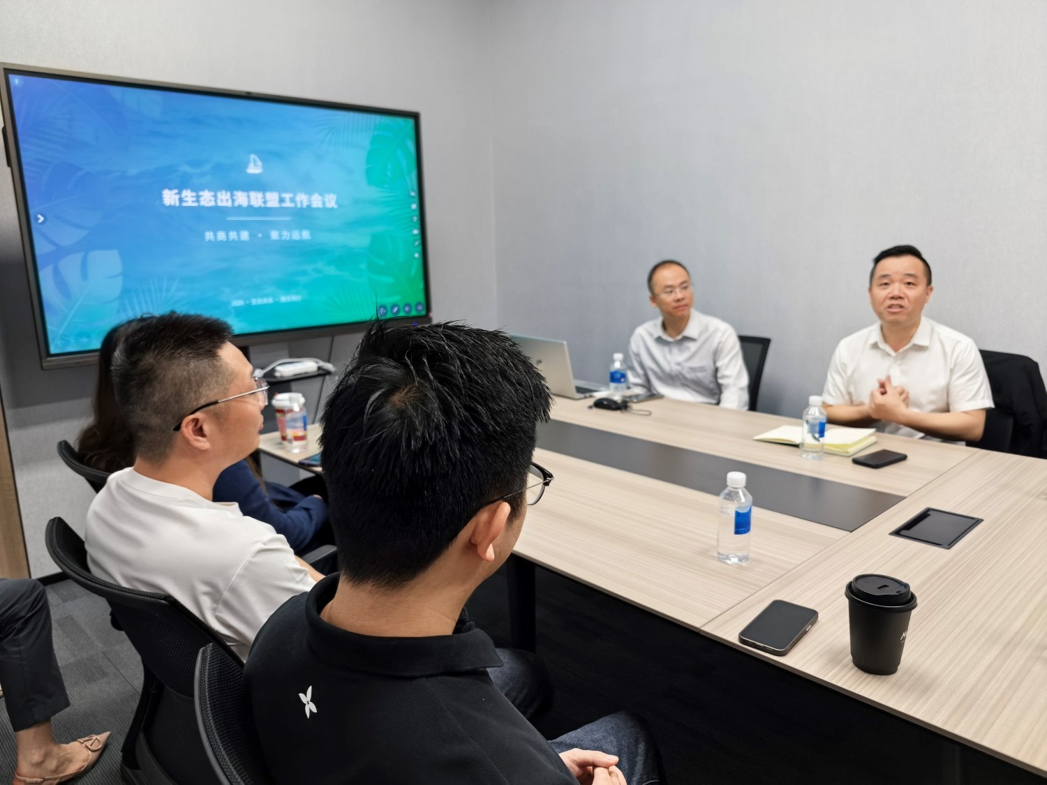 4 月 3 日上午,新生态出海联盟工作会议在坂田乐荟中心赋能中心会议室成功举办。本次会议旨在凝聚共识,明确方向,为联盟的未来发展奠定坚实基础。深圳市互联网学会秘书长钟梓炎主持会议,乐荟中心刘总致欢迎词,众多大湾区跨境电商企业代表齐聚一堂,共商出海大计。