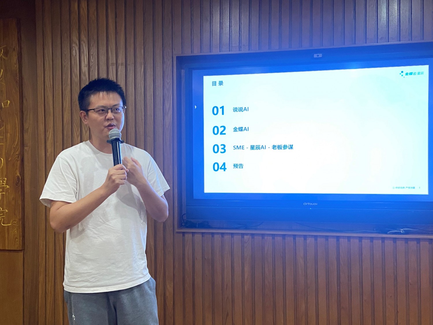 随后,本次沙龙的核心环节由金蝶 SME AI 服务部总监刘航先生带来的主题演讲 ——「AI + 管理 成就不凡」。刘航总监凭借其在企业管理软件和 AI 领域的深厚经验,深入剖析了当前企业管理面临的普遍痛点,如数据孤岛导致决策滞后、重复性劳动消耗大量人力、市场变化响应不及时等。他指出,传统的管理模式已难以适应快速变化的市场环境,引入 AI 技术并非锦上添花,而是企业生存与发展的必然选择。