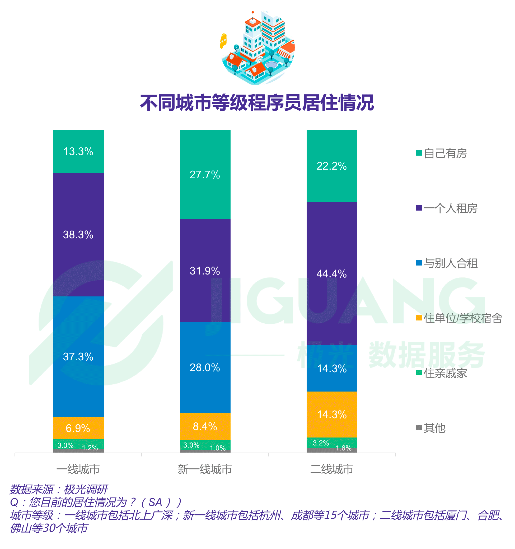 ? 一线城市程序员住房较为“苦逼”,超七成依然租房住,37.3%选择与别人合租