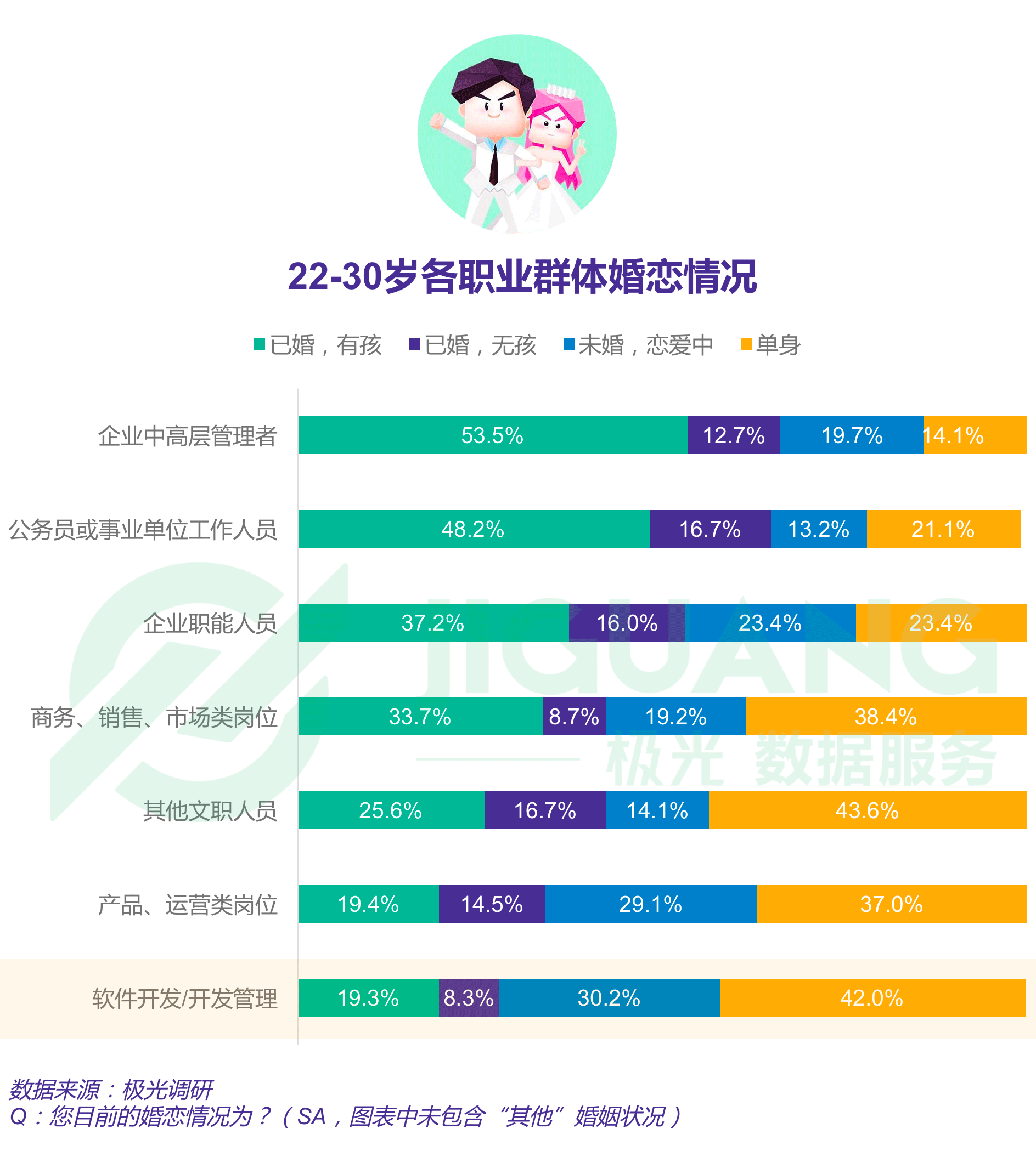 ? 22-30岁的程序员中,19.3%已完成结婚生子的人生大事,在主要职业群体中比例最低