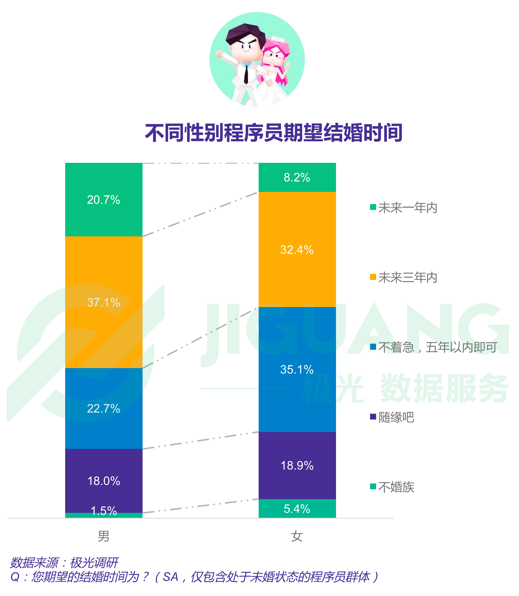 相比女性程序员,男性程序员更期望在短时间内结婚