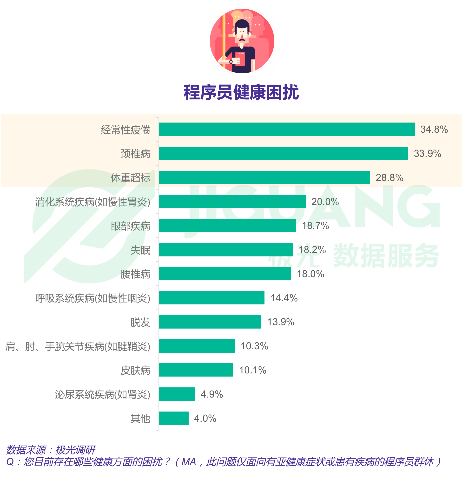 ? 经常性疲倦、颈椎病、体重超标是困扰程序员群体的重要健康问题