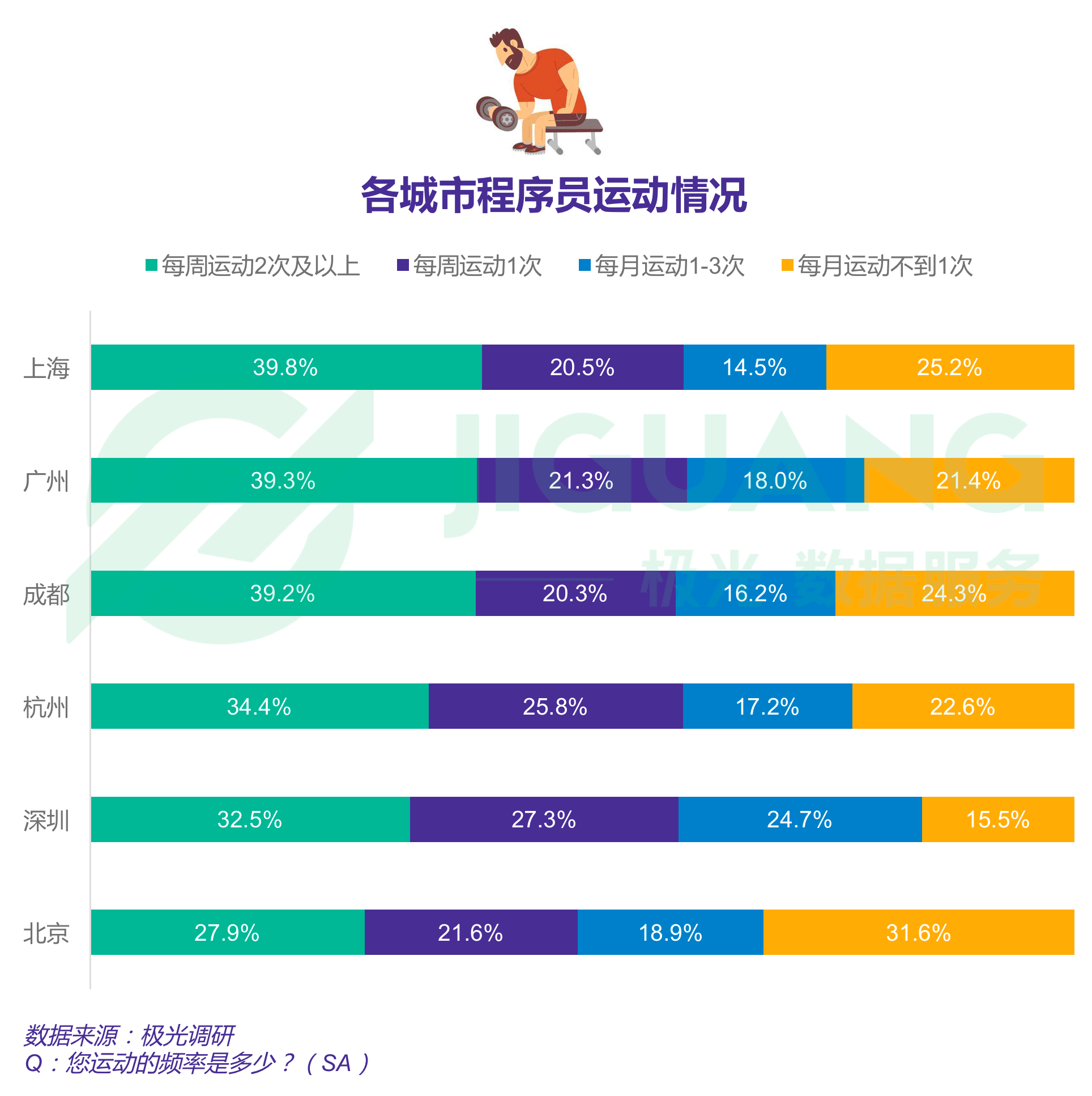 首都程序员最不爱运动?北京程序员运动频率在所调查城市中最低
