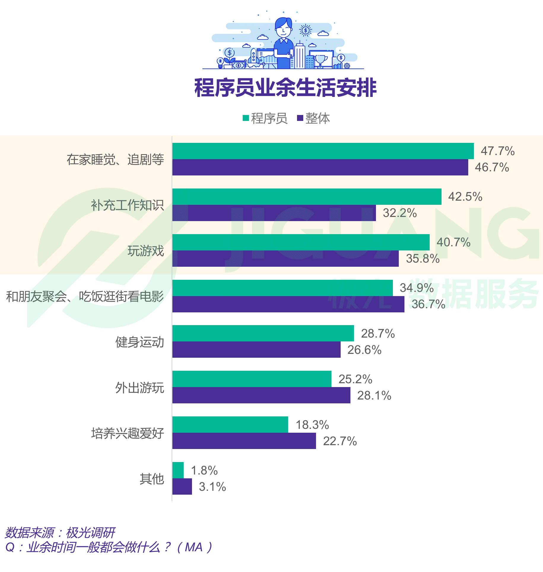 补充工作知识和玩游戏是程序员群体在业余生活安排上区别于其他群体的特征