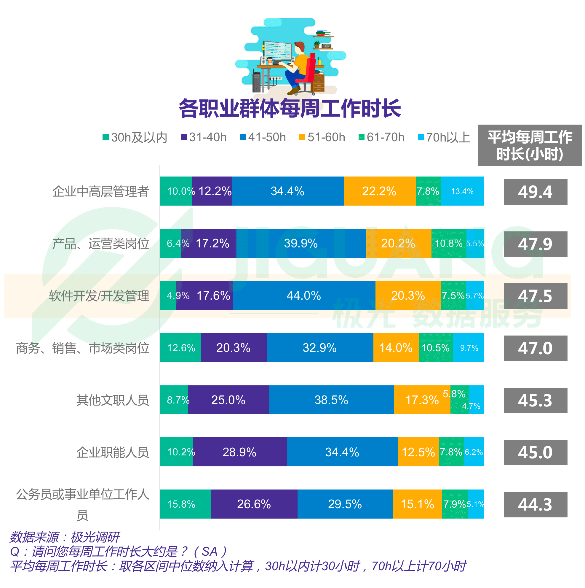 ? 受访程序员平均每周工作时长约47.5小时,仅低于企业中高层管理者和产品、运营类岗位工作人员