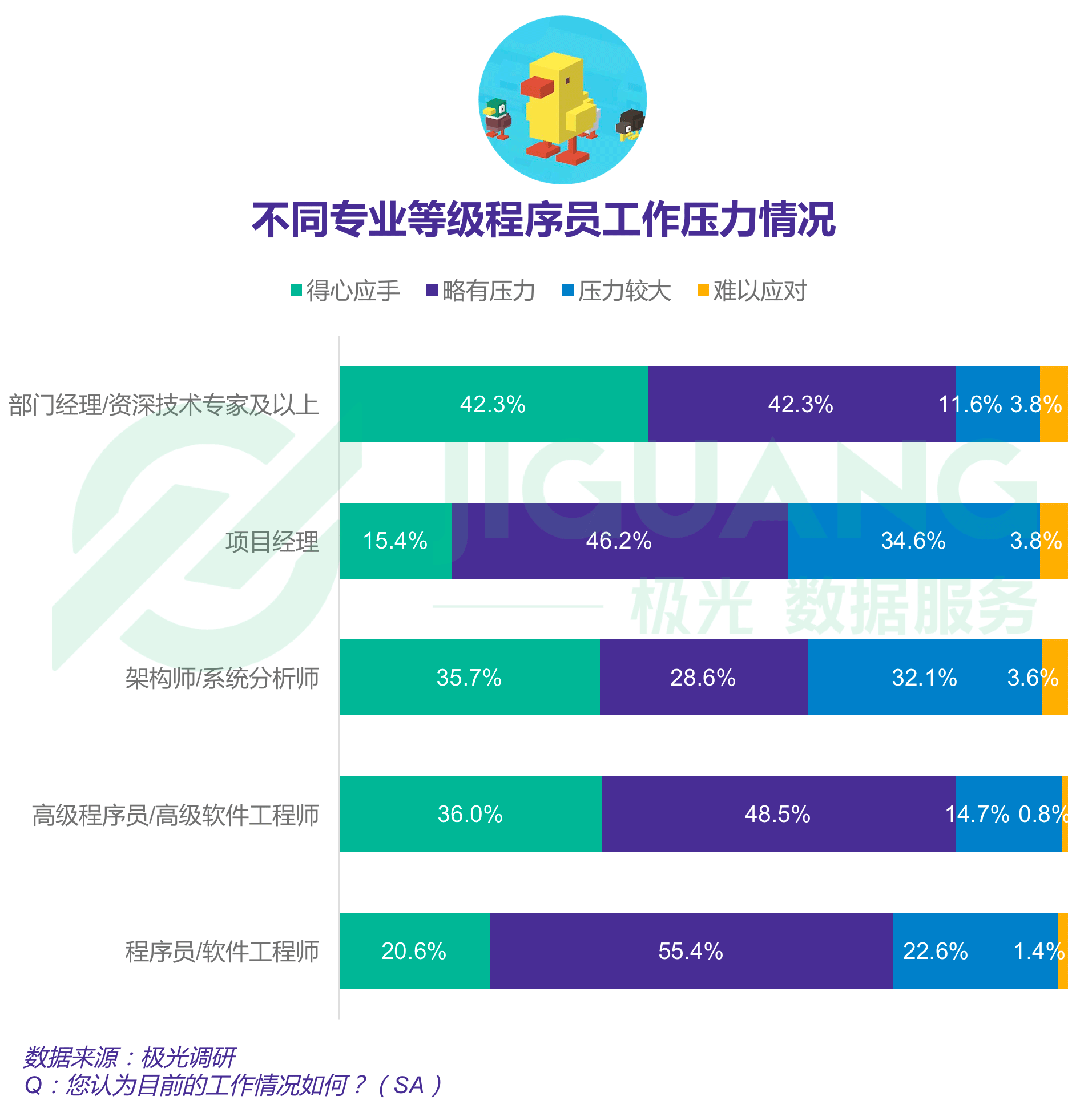 在各职业群体中,程序员自我评估的工作压力并不突出