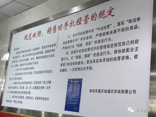 在深圳华强北飞扬时代大厦内,张贴着旧手机经营规定。新华社记者马晓澄摄
