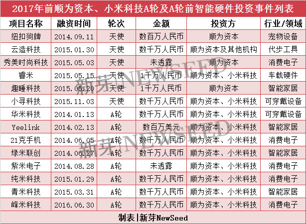 新芽NewSeed梳理了雷军及他的小米科技、顺为资本在过去几年时间里在智能硬件领域A轮及以前的投资,发现几乎遍布智能硬件的各个领域。还记得当初雷军进军互联网家居,在传统家居行业掀起了腥风血雨,如今,这一景象正在智能硬件的各个细分领域上演。回春的雷军和小米,归来仍是鲶鱼。具体投资事件如下: