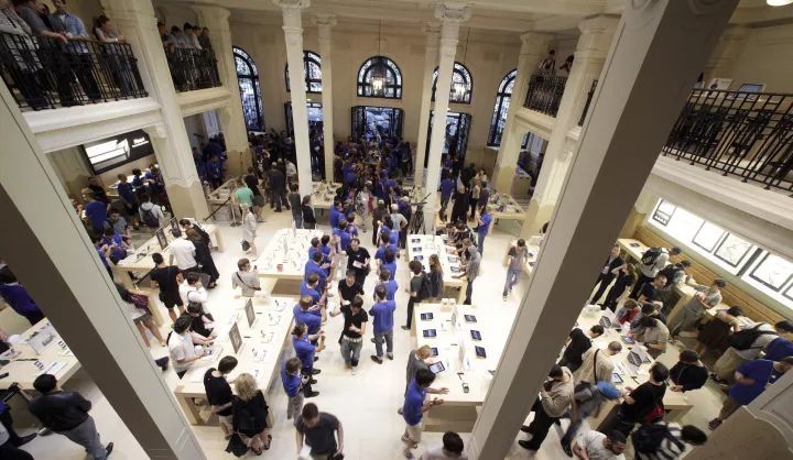 另外,注意到苹果旗舰店都是两层楼的布局吗?国内外都一样。为什么?