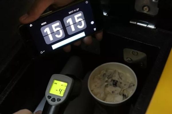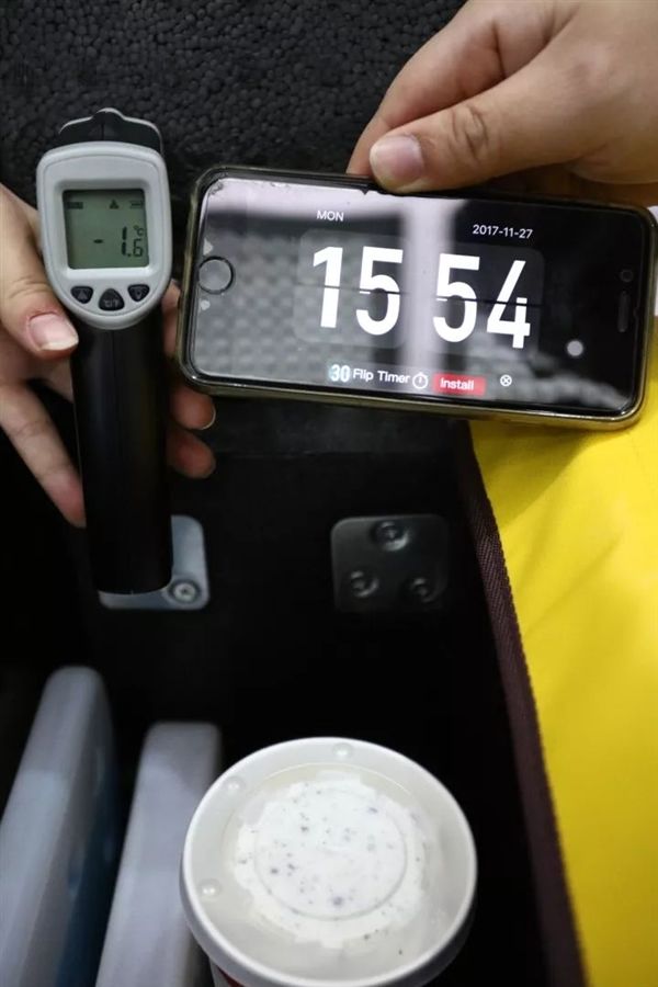 官方测试显示, 大杯DQ的冰淇淋进箱前温度是零下4℃,过了半小时再测试,仍然保持在0℃以下 ,冰淇淋还是凝固状态。
