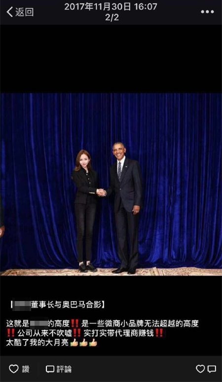 IT之家12月5日消息 今天,美国前总统奥巴马与微商合影的照片在微信朋友圈“火了”,这些名不见经传的微商卖家真的能够和美国前总统合影?