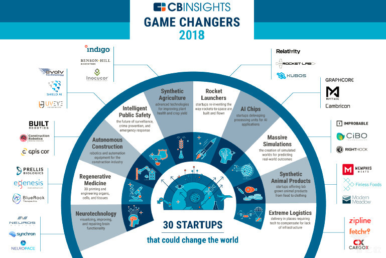 近日,CB insights发布了一份报告《Game Changing Startups 2018》,梳理了2018年可能在10个领域改变原有“游戏规则”的30家创业公司。