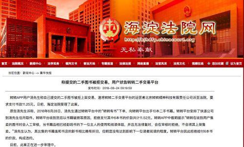 原标题:称提交二手图书被拒交易 用户状告转转二手交易平台