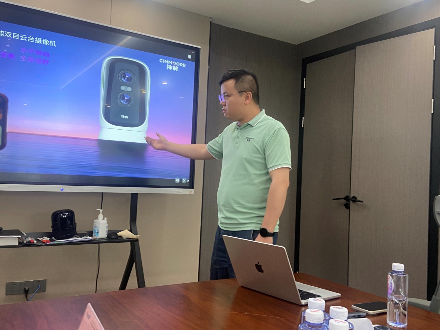 活动伊始,走访团在神眸团队引导下参观企业展厅,近距离体验神眸全系 AI 智能摄像机产品,了解品牌以自研研极芯低功耗芯片为核心、搭载4TOPS端侧NPU的全栈AI视觉技术体系,感受 “长续航、强智能、高性价比” 的产品优势,以及在家庭安防、户外监控等全场景的落地能力。