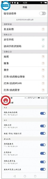 记者测试发现,天猫、携程、58同城、优酷、爱奇艺、今日头条、赶集网七款APP在华为和小米手机内置应用商店下载时均在没有明示提醒的条件下默认开启了定位等敏感权限,而在vivo和OPPO手机内置应用商店下载时,除优酷在OPPO安装时默认开启了摄像头和录音外,其余APP均做到了明示提醒。