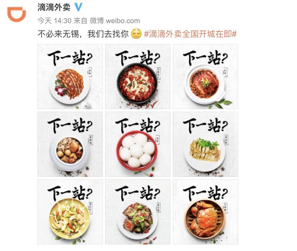 滴滴外卖官方微博昨日发布 9 张海报,称全国开城在即,此前传言的进入九个城市或为属实。每张海报下方是各地特色美食,让人充满期待。根据骑手客户端猜测,这几个城市可能是无锡、南京、长沙、福州、济南、宁波、温州、成都和厦门。