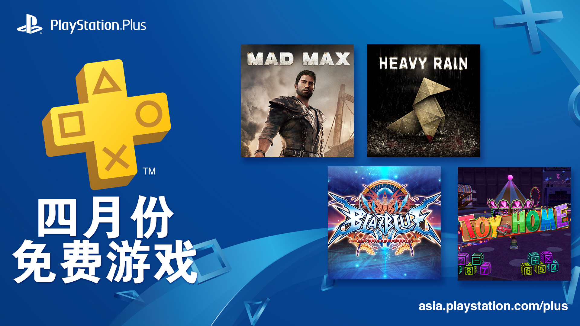 本月 PlayStation Plus 带来 5 款港服限时免费游戏:《 疯狂的麦克斯 》PS4 、《 暴雨 》PS4 、《 苍翼默示录神观之梦 》PS3 / PS4 、《 玩具之家 》PS3 ,优惠至 5 月 9 日。